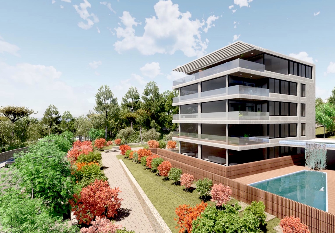 These apartments will be constructed in the most modern style, in two blocks, set in the gardens with a swimming pool.
