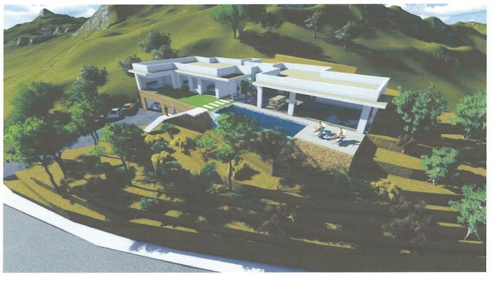 This is a beautiful plot on a gentle slope on the prestigious Golf urbanisation of Mas Nou on the outskirts of Platja d’Aro. It has very good sea and mountain views. The owner had an idea of what he would like to build on this plot and so had his architect draw up a project that can be used as you can see in the two illustrations above.